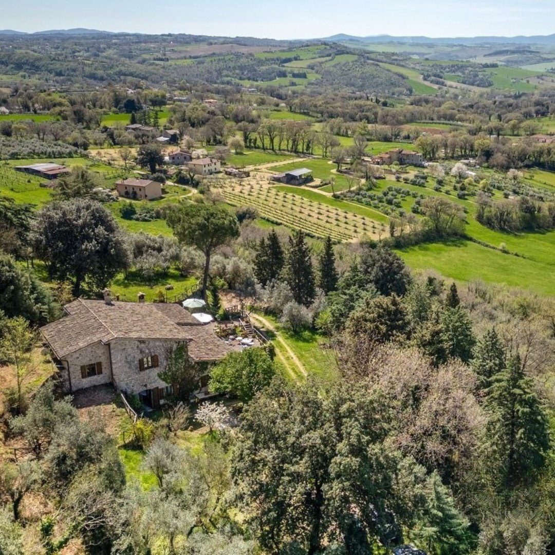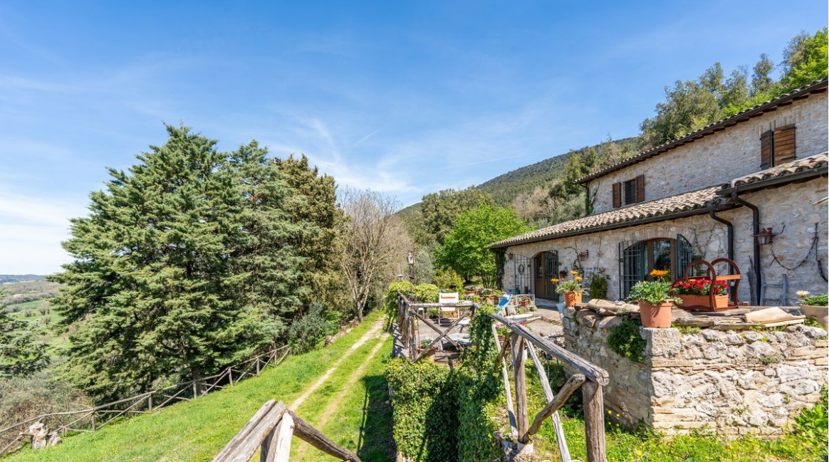 Casale Umbro 被一块2.8公顷的私人土地环绕,建筑周围区域用作花园,部分区域种植橄榄树,其余区域为林地,确保了高度的私密性和私密性。